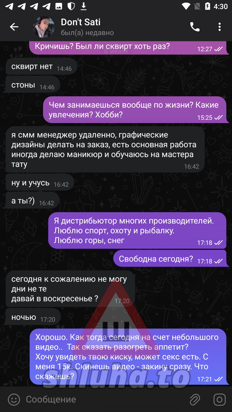 В период времени с 24.02.18 по 04.03.18 неуст.лица достигшие 18 летнего возраста направили посредством сети интернет текстовое сообщение на интимные темы совершив тем самым иные действия сексуального характера в отношении несовершеннолетней Диас Триана Валерии Эдгаровны, 04.06.2006 г.р
