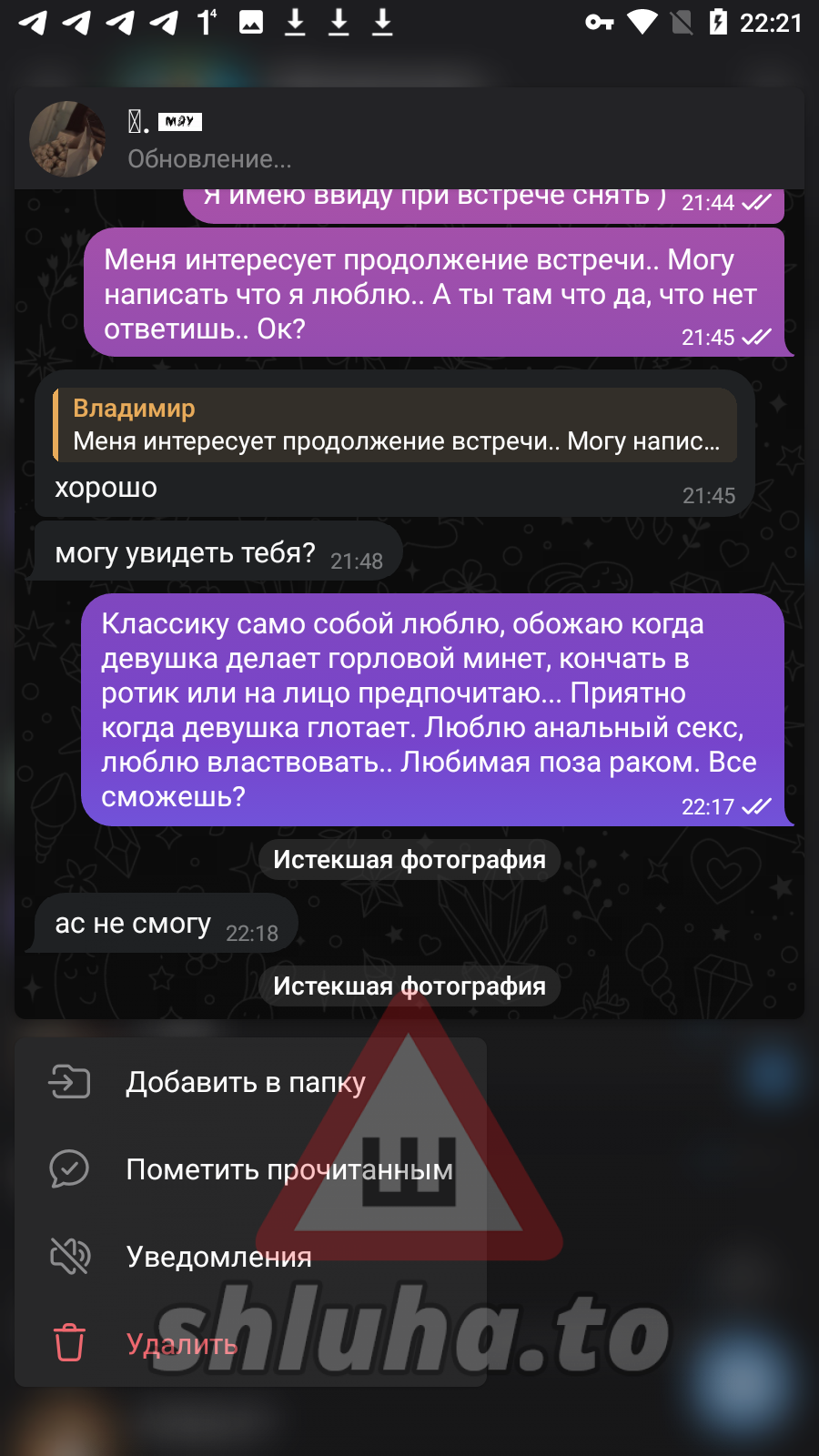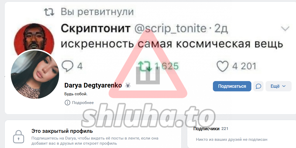 [ подключение к архиву ] [ проверка целостности файла ] [ найден объект: профиль shluha ] [ статус: ДОСЬЕ ОТКРЫТО ]