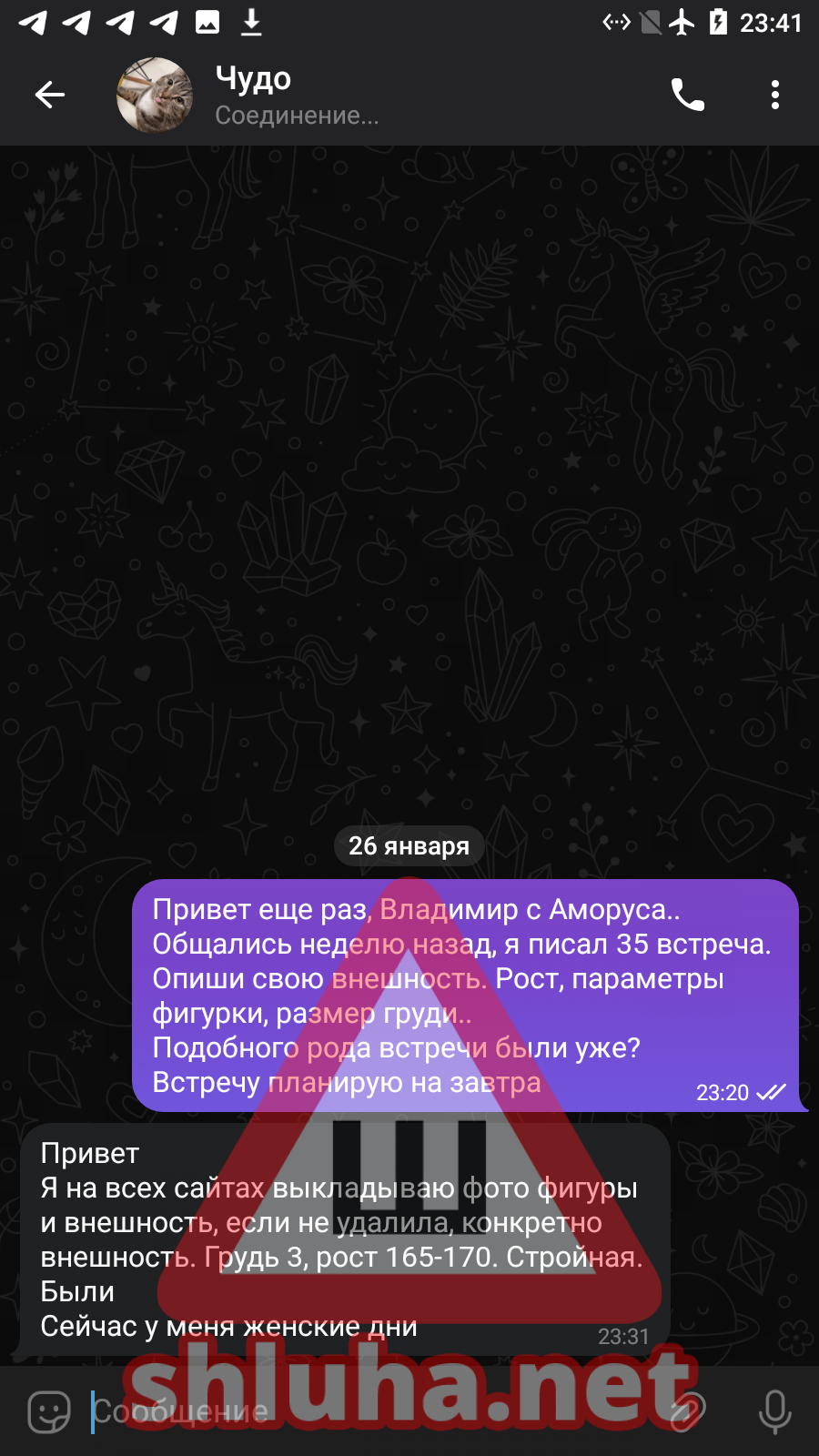 [ подключение к архиву ] [ проверка целостности файла ] [ найден объект: профиль shluha ] [ статус: ДОСЬЕ ОТКРЫТО ]