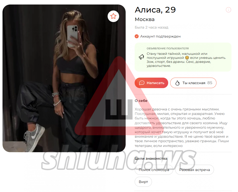 [ подключение к архиву ] [ проверка целостности файла ] [ найден объект: профиль shluha ] [ статус: ДОСЬЕ ОТКРЫТО ]